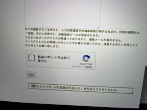 と表示されたらOKです。自動返信が必ず届いているので確認をお願いします。